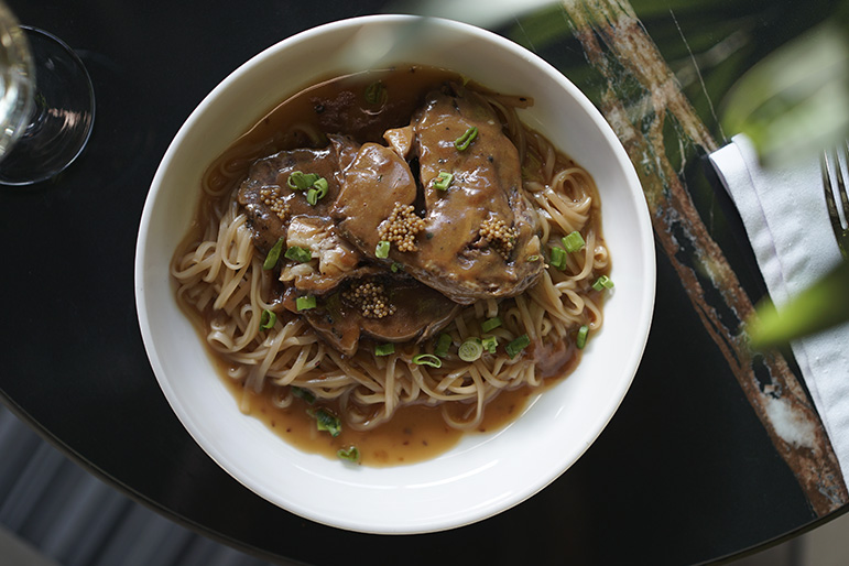 Pirinç Noodle, Hardal Tohumu Turşusu, Taze Soğan, Demi Glace Sos